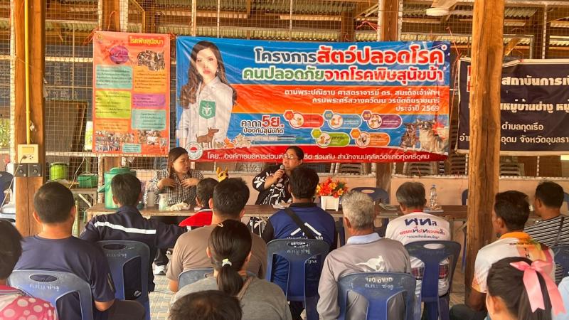โครงการสัตว์ปลอดโรค คนปลอดภัย จากโรคพิษสุนัขบ้า ตามพระปณิธานศาสตราจารย์ ดร.สมเด็จเจ้าฟ้าฯ กรมพระศรีสวางควัฒนวรขัตติยราชนารี ประจำปี 2569 องค์การบริหารส่วนตำบลกุดเรือ อำเภอทุ่งศรีอุดม จังหวัดอุบลราชธานี